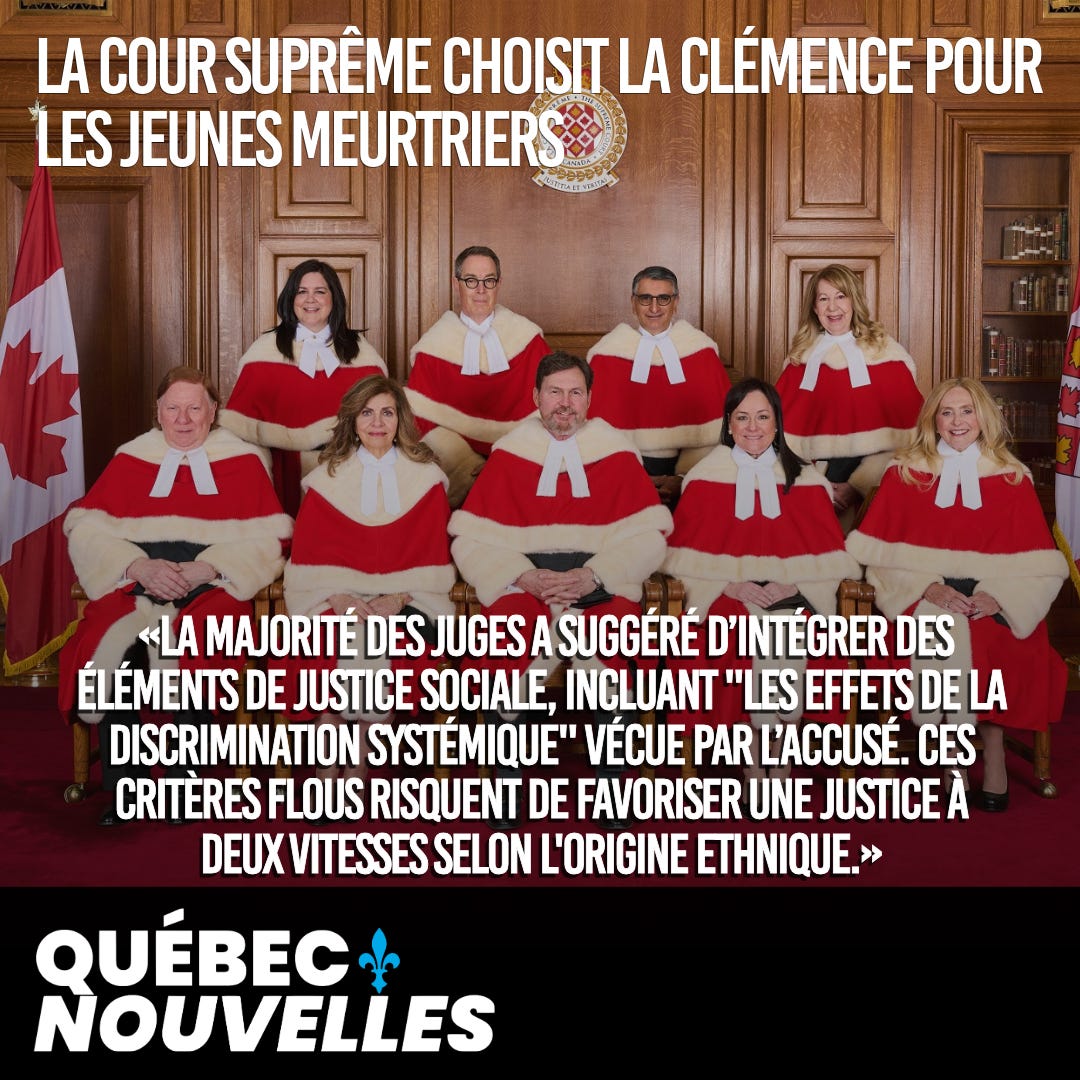 Le même jour où un adolescent de 14 ans, recherché pour le meurtre brutal d’une grand-mère torontoise, était enfin appréhendé par la police, la Cour suprême du Canada rendait une décision qui pourrait bouleverser à jamais la manière dont le système judiciaire traite les jeunes auteurs de crimes graves. Comme le souligne Jamie Sarkonak dans son article du National Post, cette décision rend désormais quasi impossible l’imposition de peines pour adultes aux adolescents, même dans les cas les plus violents.